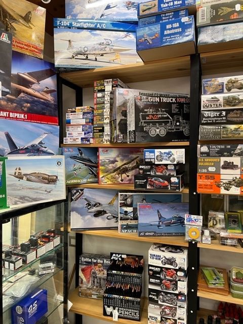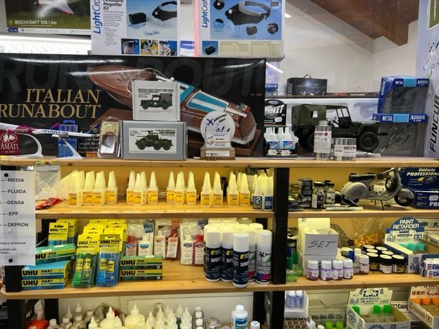 Il negozio dispone di una zona di esposizione al pubblico, dove troverai modellini già assemblati, modelli da dipingere, pezzi di ricambio e materiale per il montaggio.